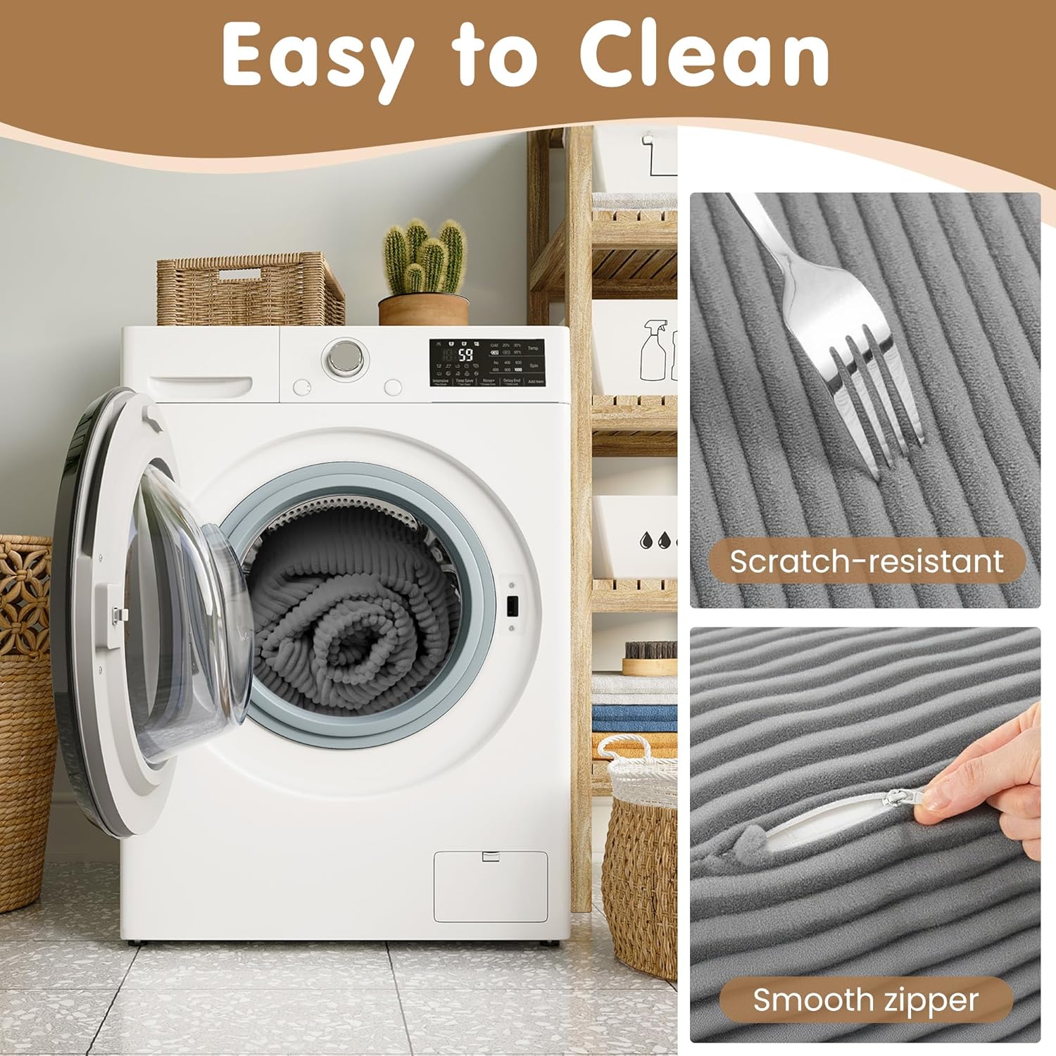 • Luxurious & Practical Fabric: Wrapped in soft, durable corduroy that’s as stylish as it is smart. 🎨 The stain-resistant, machine-washable cover makes spills and messes a non-issue—perfect for families and pets! 🐶